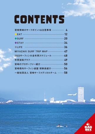 Contents宮崎県域のサーフポイント&注意事項・・・・・・・・・・・・・・・・・・・・・・・・・・・・・・・・・・・・・・・・・・・・・・・・・・412203436474849505658◆EAT◆SURF◆STAY◆LIFE・・・・・・・・・・・・・・・・・・・・・・・・・・・・・・・・・・・・・・・・・・・・・・・・・・・・・・・・・・・・・・・・・・・・・・・・・・・・・・・・・・・・・・・・・・・・・・・・・・・・・・・・・・・・・・・MIYAZAKISURFTRIPMAP・・・・・・・・・・・・・・・2023サーフィン大会年間スケジュール・・・・・・・・・・・年間波高グラフ・・・・・・・・・・・・・・・・・・・・・・・・・・・・・・・・宮崎のプロサーファー紹介・・・・・・・・・・・・・・・・・・・・・・宮崎県内サーフィン連盟理事長紹介・・・・・・・・・・・・一般社団法人宮崎サーフメディカルチーム・・・・・・