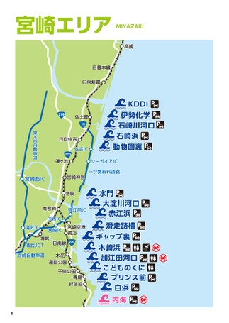 宮崎エリアMIYAZAKIKDDI伊勢化学石崎川河口石崎浜動物園裏水門大淀川河口赤江浜滑走路横ギャップ裏木崎浜加江田河口こどものくにプリンス前白浜内海8